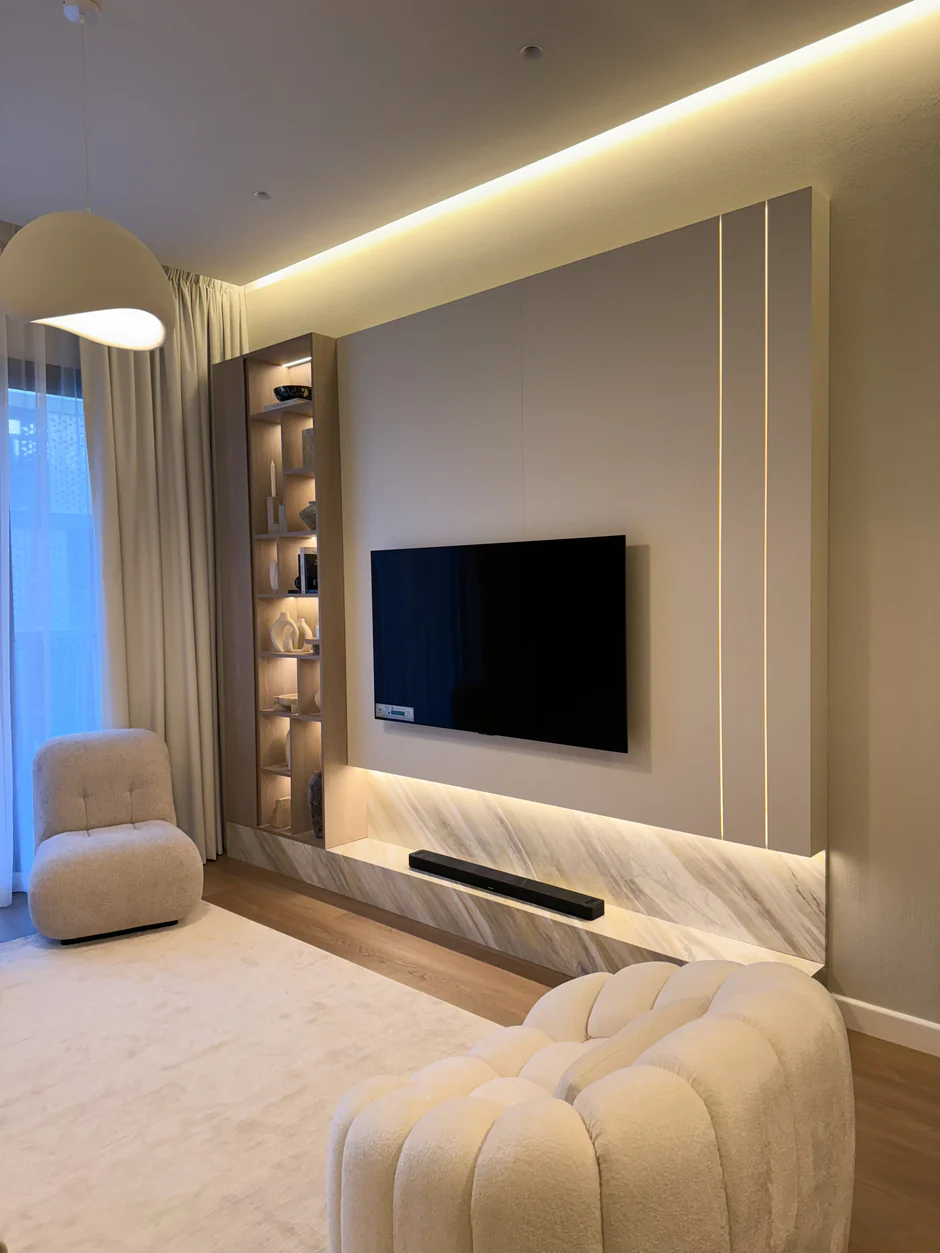 Create a stunning focal point in your living room with our custom-designed media walls. Blending functionality with modern design, they’re perfect for mounting your TV, hiding cables, and adding decorative panels or lighting for a sleek, luxurious look.